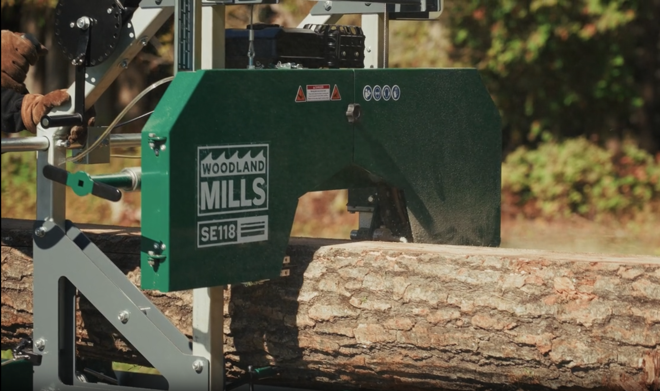 La SE118 utilise des lames à pointe durcie de 32 mm x 2972 mm x 1,0 mm (1,25 po x 117 po x 0,042 po) disponibles auprès de Woodland Mills. Le trait de scie est réduit au minimum, à seulement 2 mm (0,080 po), afin de maximiser la quantité de bois par grume.